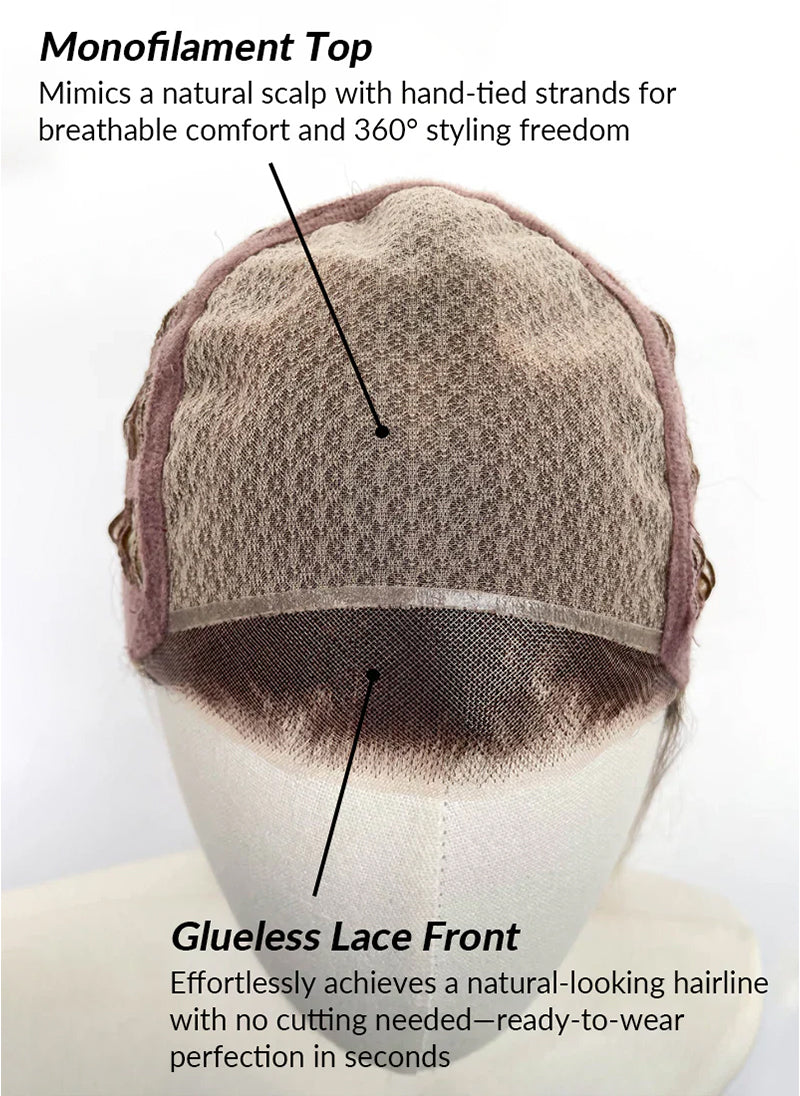 - Monofilament Top: mimics a natural scalp with hand-tied strands for breathable comfort and 360-degree styling freedom