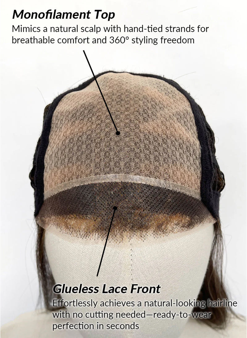 - Monofilament Top: mimics a natural scalp with hand-tied strands for breathable comfort and 360° styling freedom.