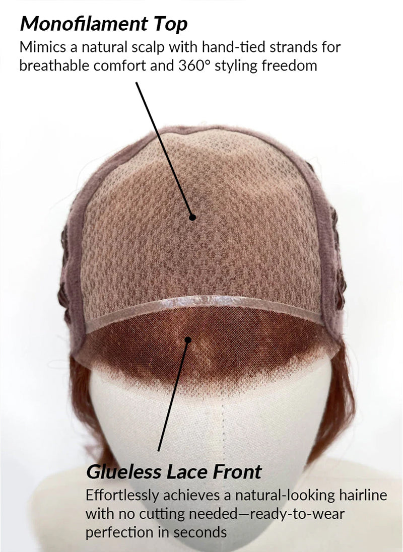 - Monofilament Top: mimics a natural scalp with hand-tied strands for breathable comfort and 360° styling freedom.