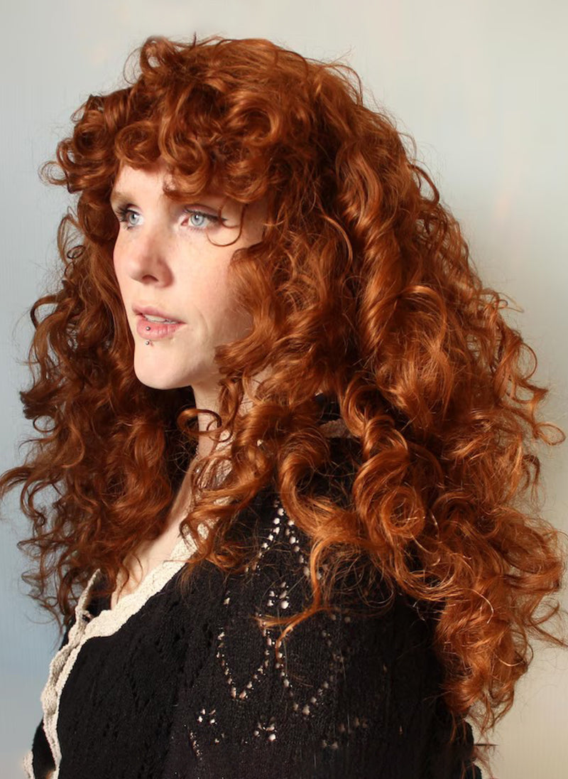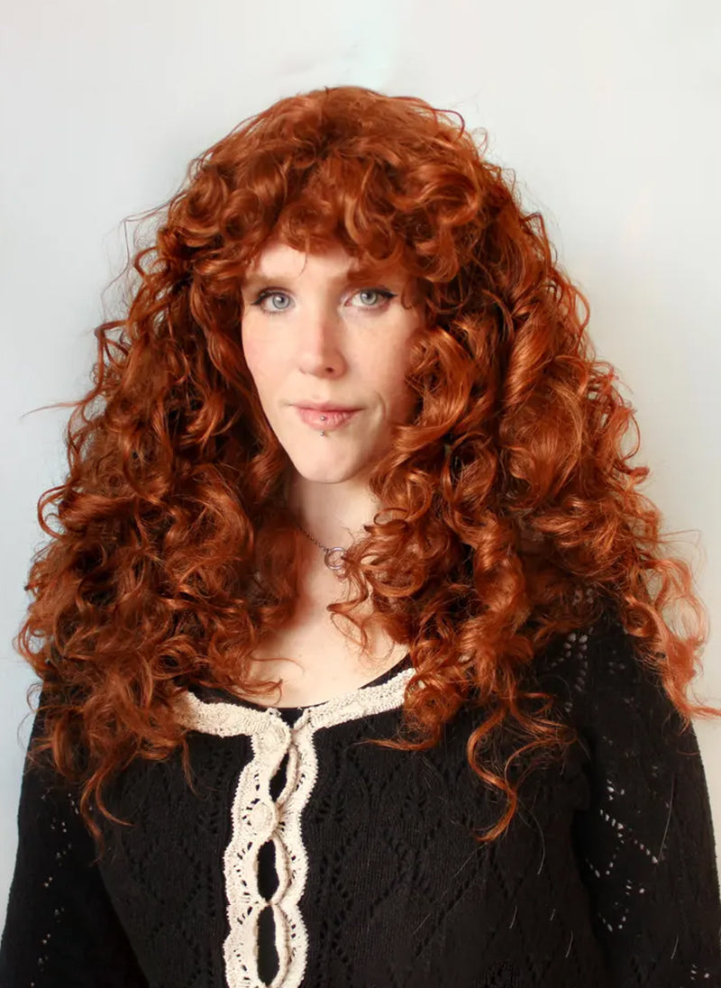 Curly Red Wig · Long Ginger Auburn Glueless Unit with Bangs